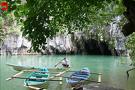 Sabang est bordé d’ une immense plage, peuplée de bungalows en bambous, très simples. La mer est pleine de bancas et le paysage de montagnes et de jungle derrière est très beau. Nous partons en banca voir la plus grande rivière souterraine du monde. Nous débarquons dans une forêt peuplée de varans et de singes.Nous nous armons de gilets et de casques «pare-chauves-souris». A l’aventure! Tous les quatre nous entrons en banca dans la grotte. Je suis en tête et tiens la lampe pour éclairer. Il y a beaucoup de chauves-souris, accrochees au plafond,ou qui volent autour de nous. On entre dans d'enormes boyaux. Il y a de grands stalagmites et de grands stalactites. Le guide nous fait remarquer plusieurs roches qui ont la forme de dinosaures,de cheval,de bougie,de champignons etc. Puis, dans un lieu appele la cathedrale, on distingue la sainte famille,et un ange et aussi un gros tas de guanos(merde de chauve-souris). Nous rebroussons chemin au bout d'une demi heure parce il faudrait deux heures de plus pour arriver a la fin du souterrain.Conclusion: c etait tres impressionant. En route maintenant pour Puerto Princesa la capitale de l'ile de palawan!